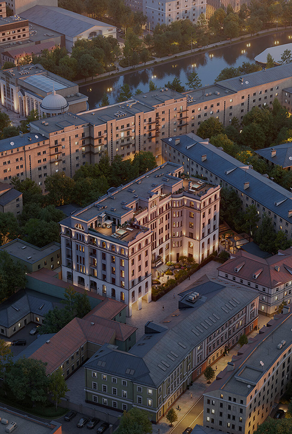 Дом находится в тихом Потаповском переулке, в глубине квартала. В 50 метрах от знаменитых Чистых прудов, в одном из самых романтичных и престижных районов Москвы.