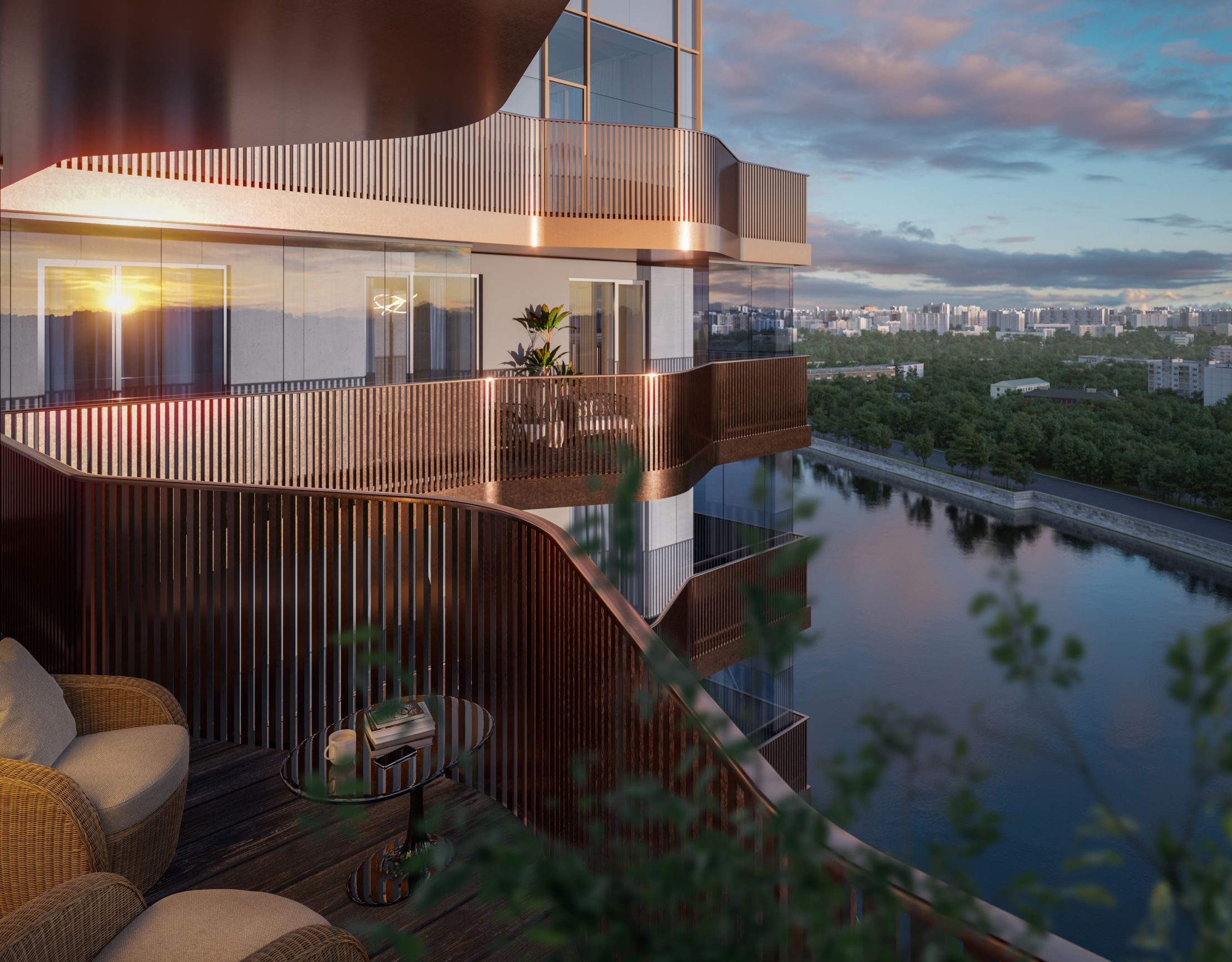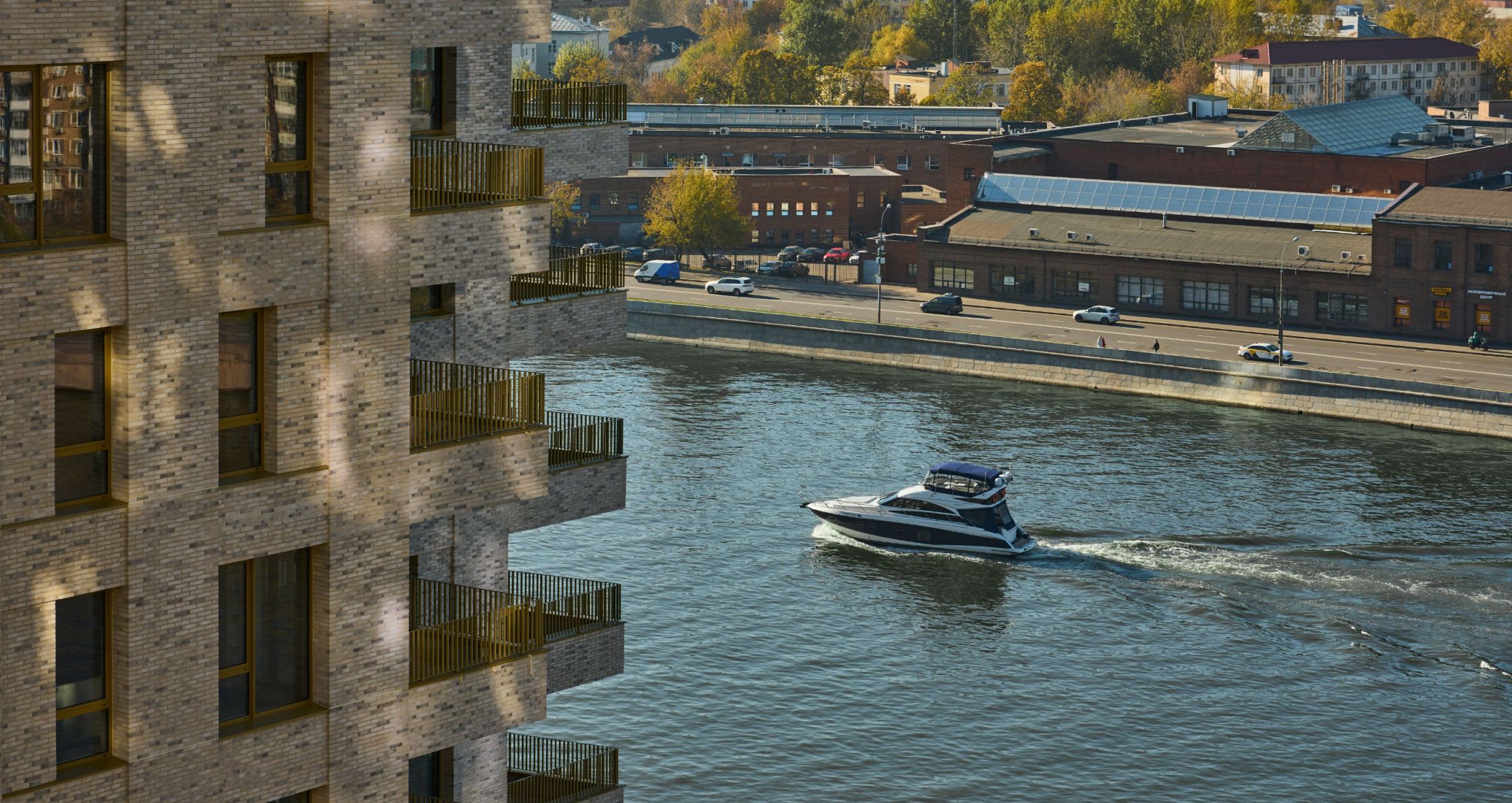 Благодаря расположению на первой линии реки и пешеходной набережной без автомобильного трафика в вашем доме — чистый воздух и тишина.