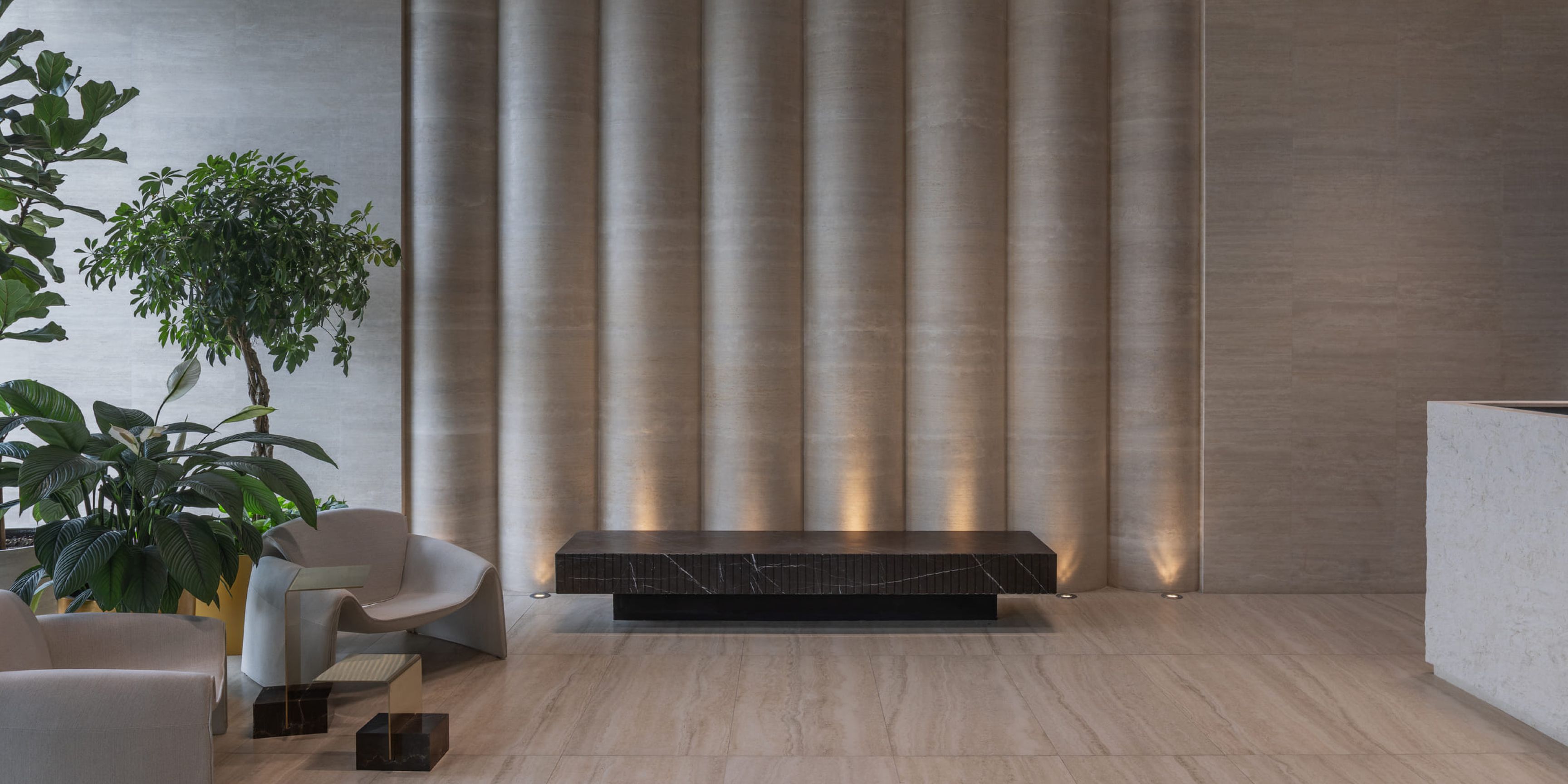 В каждом лобби есть мягкая зона ожидания с биокамином и живыми растениями