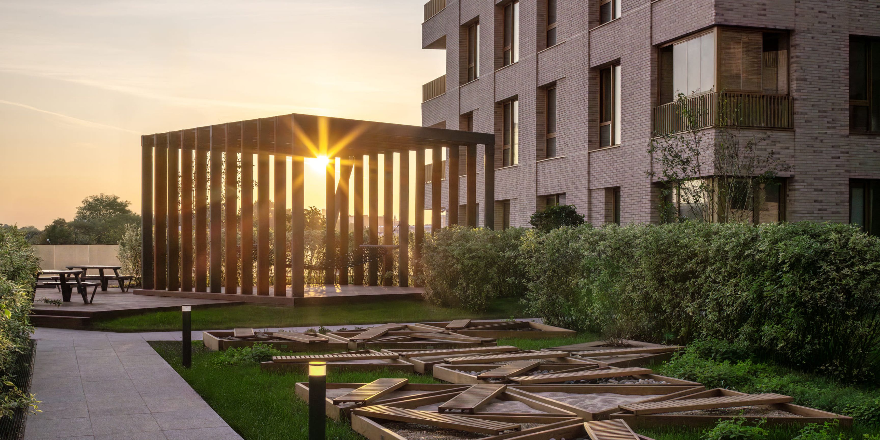 Уединённые зоны с шезлонгами, гамаками и перголами станут любимым местом для отдыха на свежем воздухе
