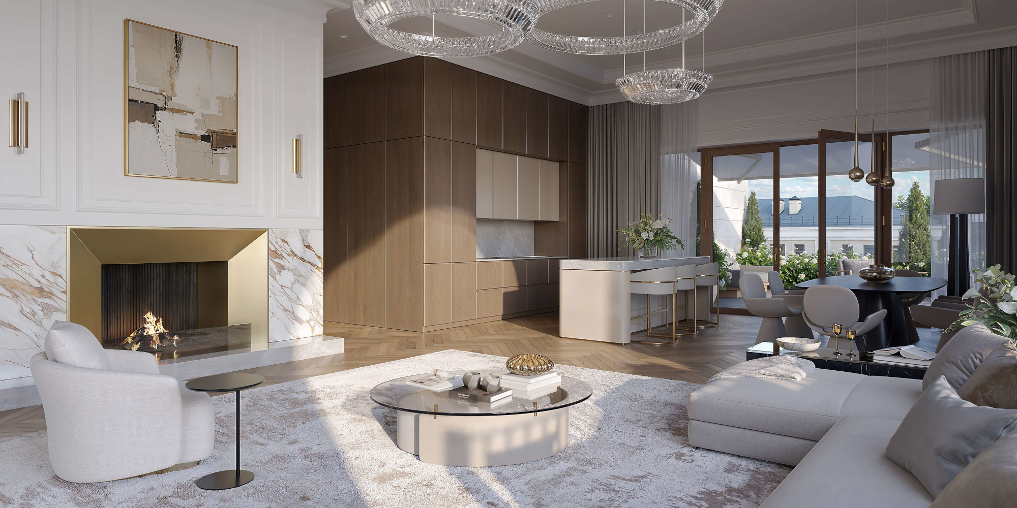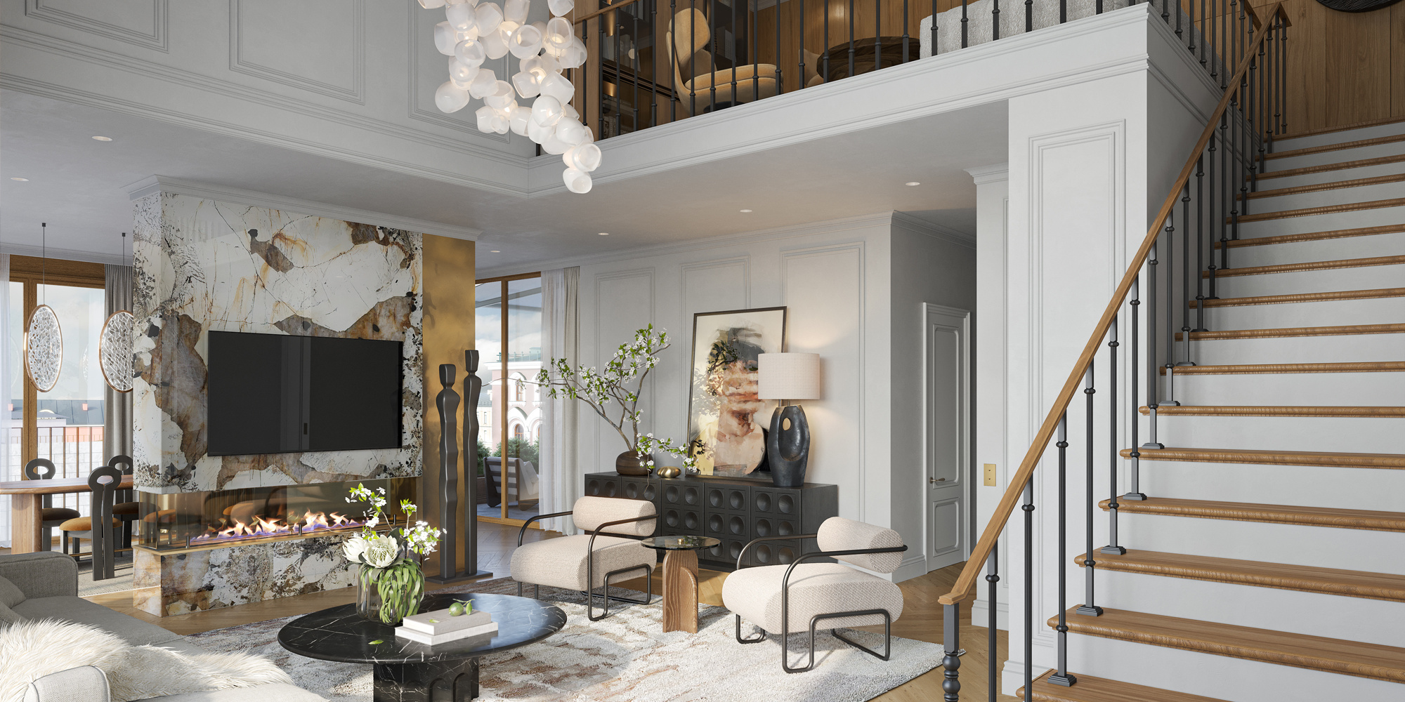 Выше вас только кремлёвские звёзды. Просторные сервисные пентхаусы с уютным дровяным камином и вторым светом благодаря высоте потолков до 6,15 метра. Впечатлите друзей невероятной приватностью и роскошными видами на Кремль в 300 метрах.