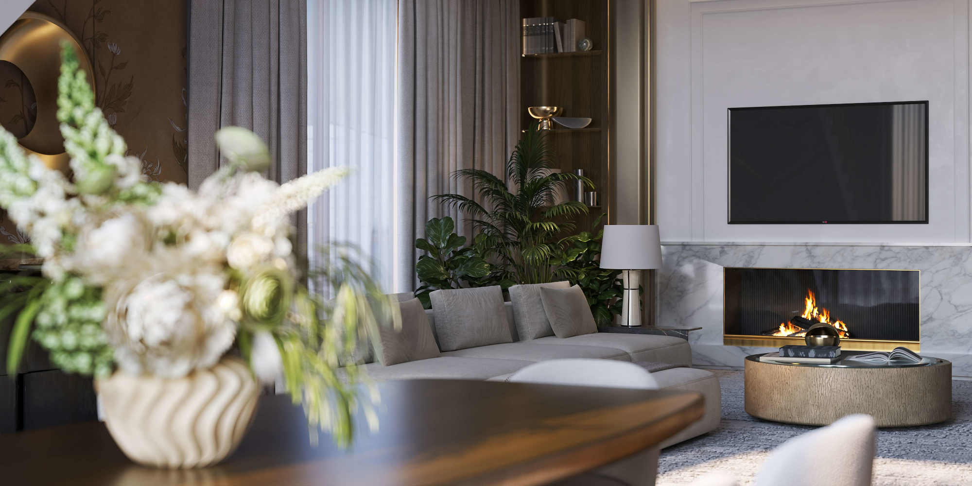 Настоящие дровяные камины, высокие потолки