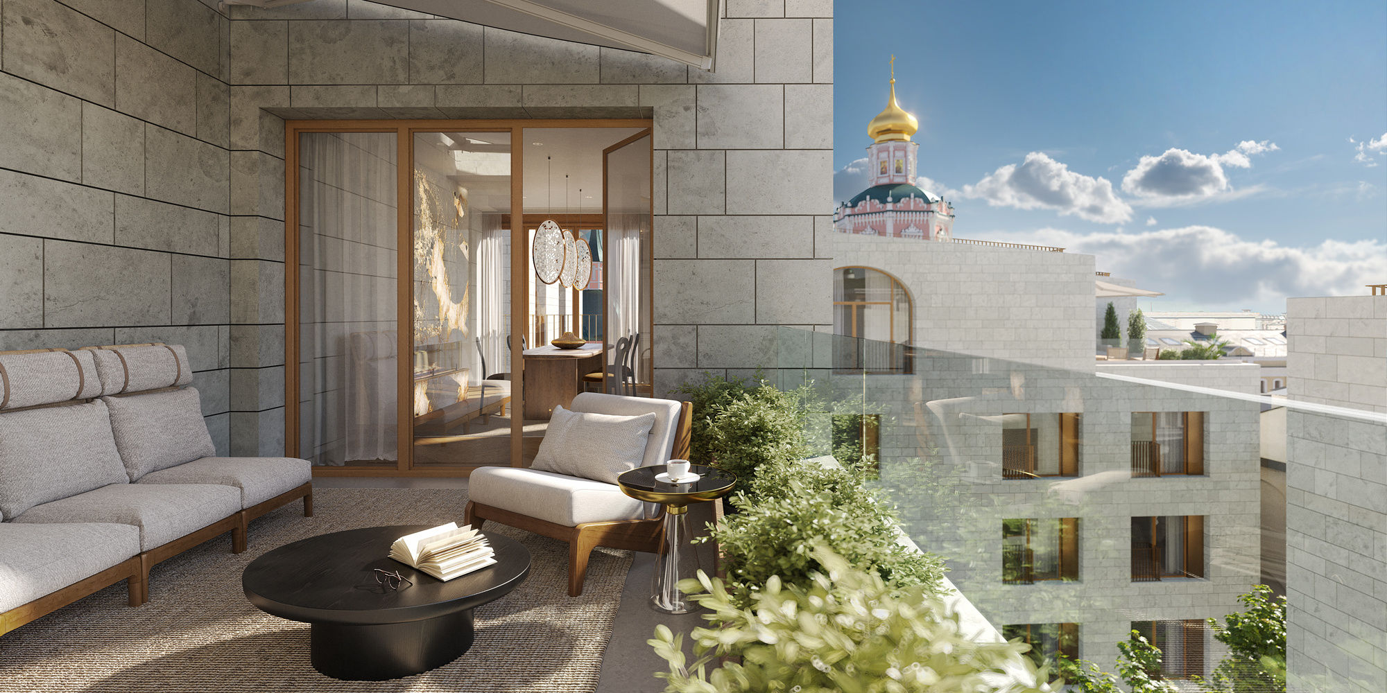 Особая привилегия ждёт обладателей собственных террас: завтракайте с видом на Красную площадь, любуйтесь закатом над куполами древних церквей с бокалом вина на собственной террасе в самом сердце исторической Москвы.