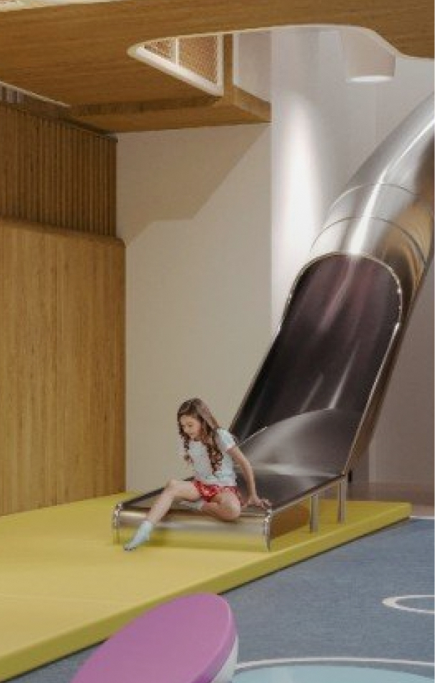 Игровое пространство разделено на зоны для юных жителей всех возрастов: для малышей (0–3 года), дошкольников (3–7 лет), школьников