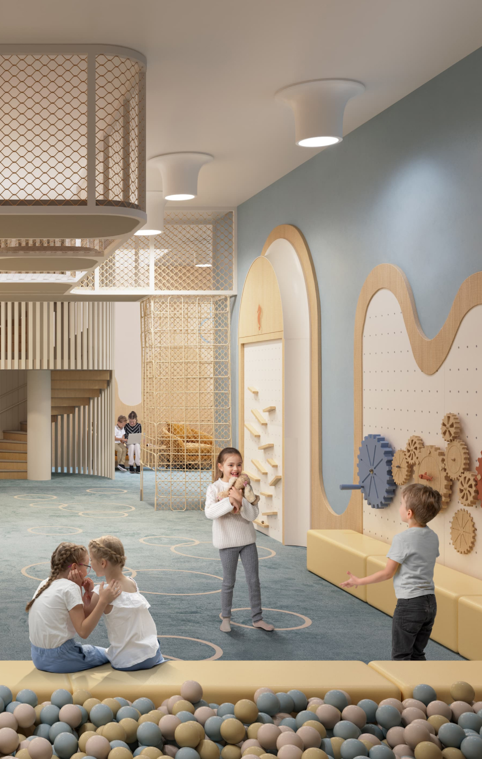 Игровое пространство разделено на зоны для юных жителей всех возрастов: для малышей (0–3 года), дошкольников (3–7 лет), школьников (7–11 лет), подростков.