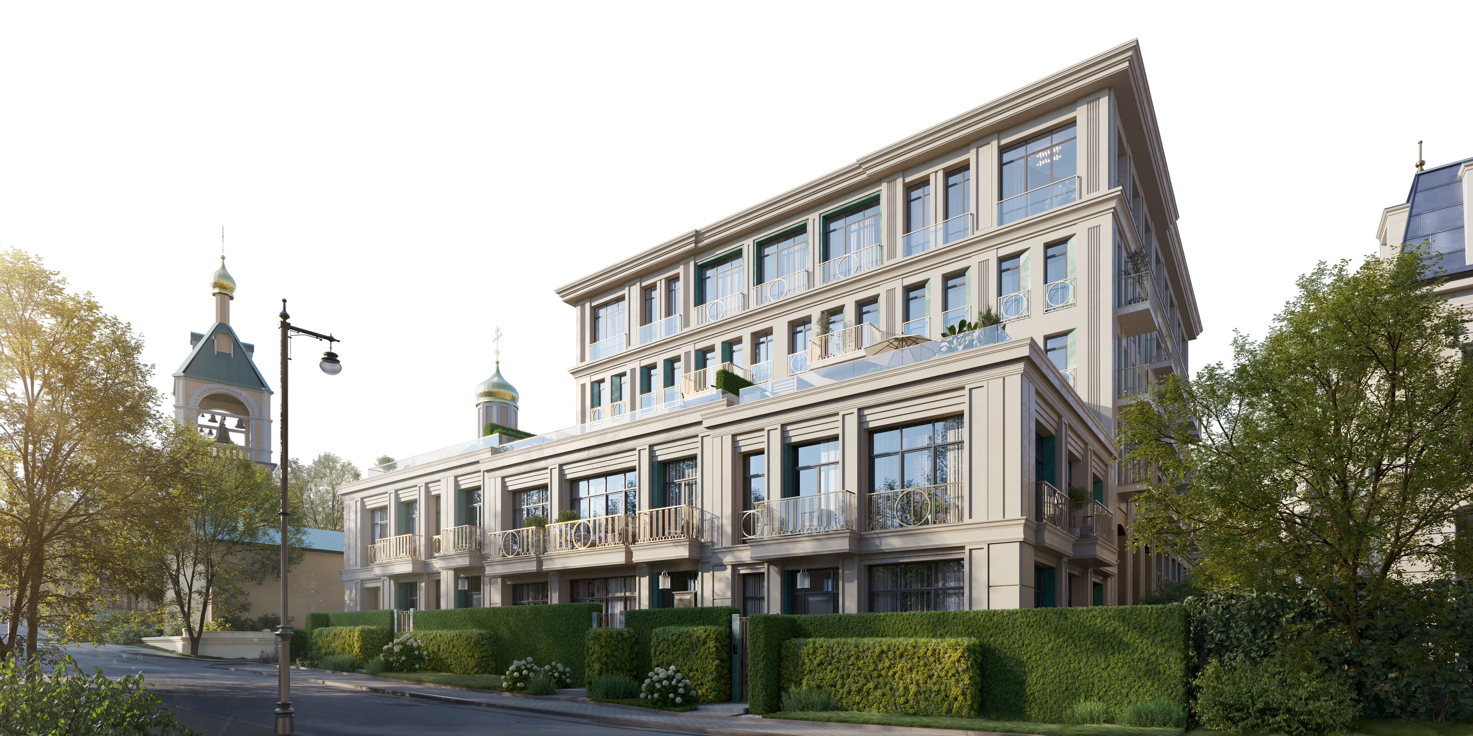 - Окна выходят на исторический центр, тихие улочки Остоженки, церковь Илии Пророка, а из пентхаусов открывается вид на храм Христа Спасителя и Кремль.