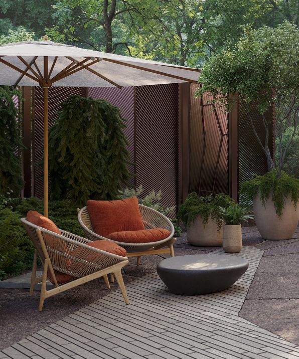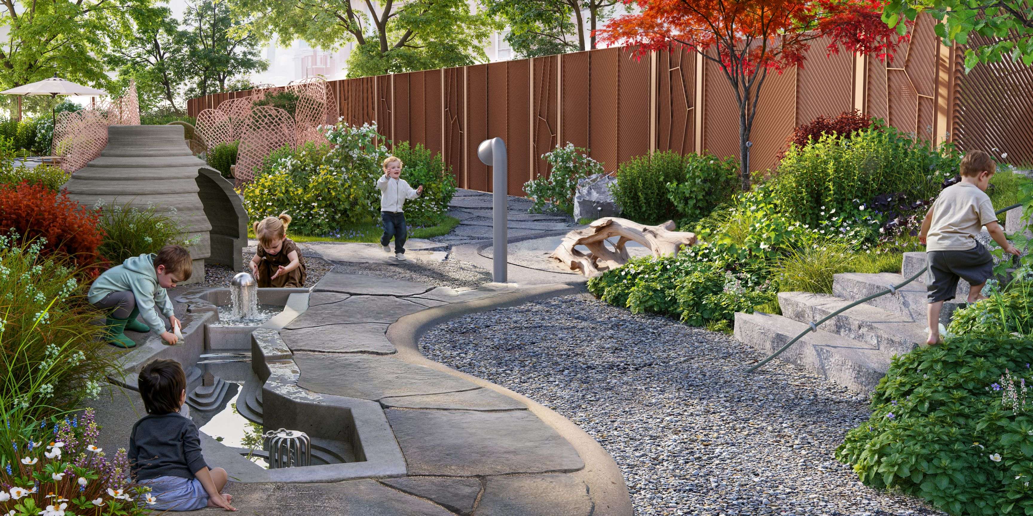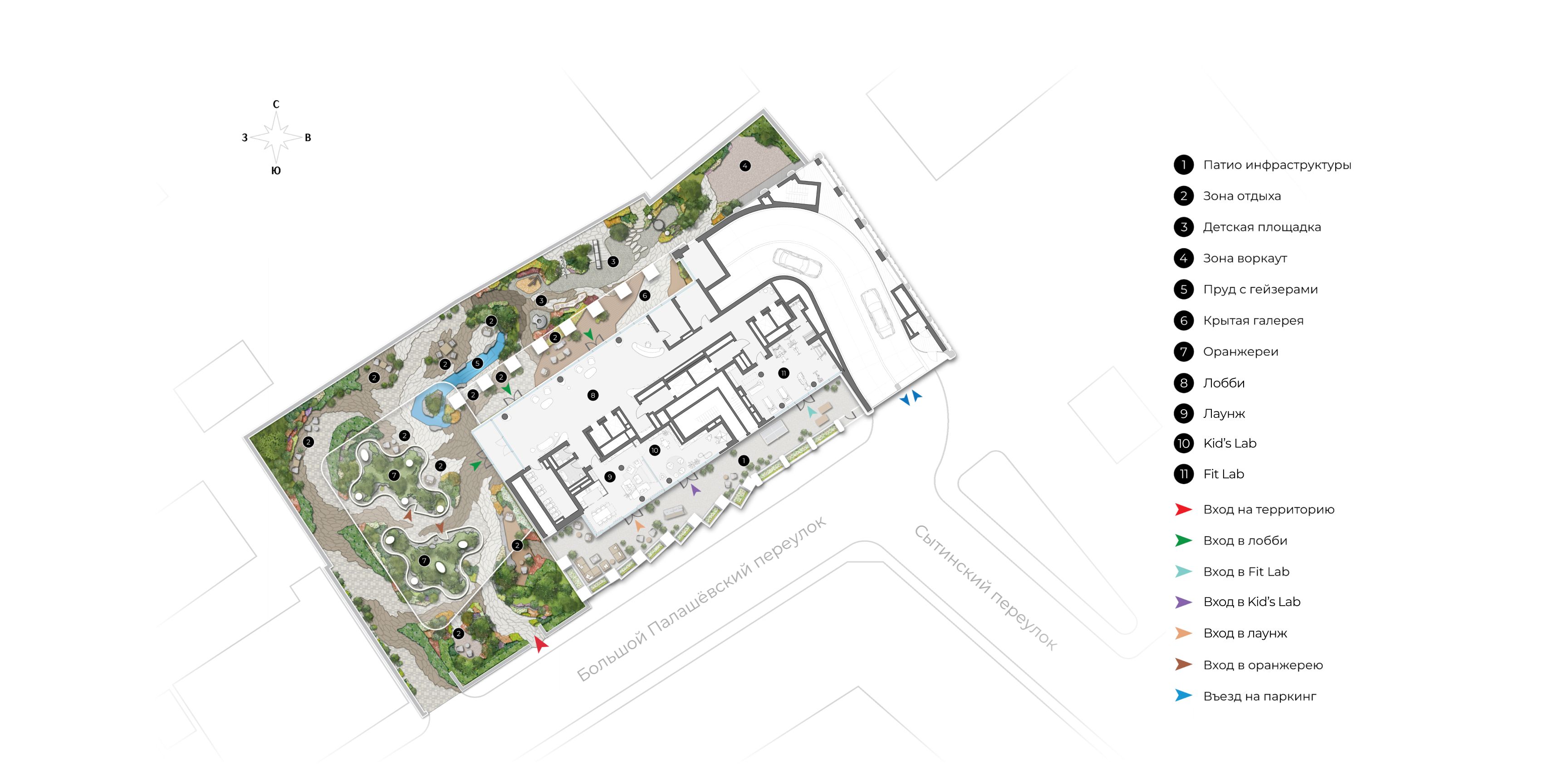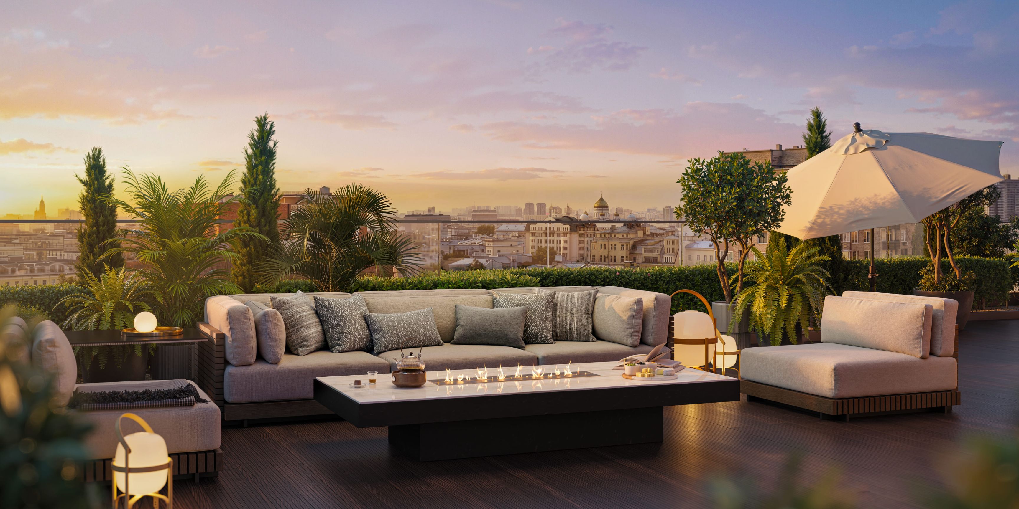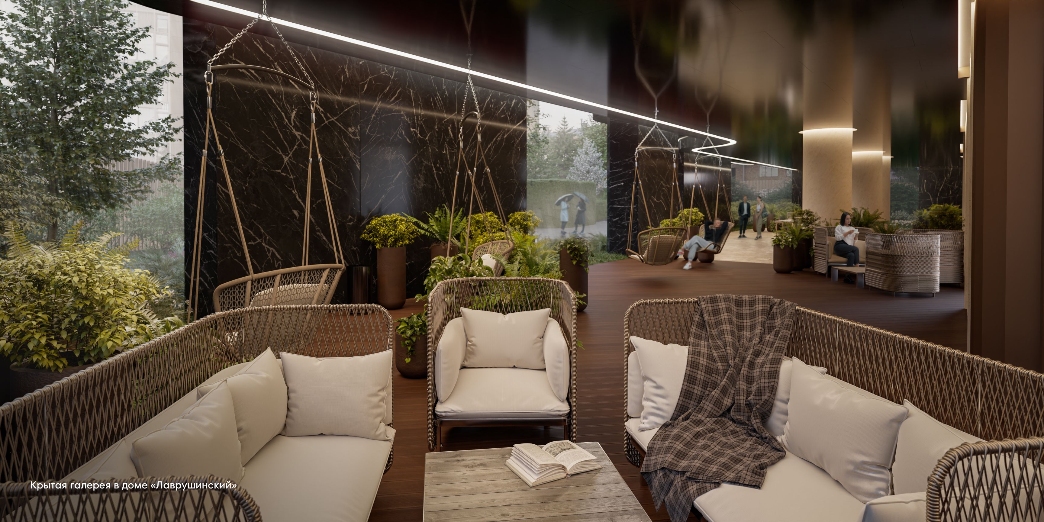 На территории дома беспрецедентный для Патриарших двор-сад с прудом, зелёными комнатами и крытой галереей. Каждая деталь сада продумана для вашего отдыха и наслаждения тишиной.