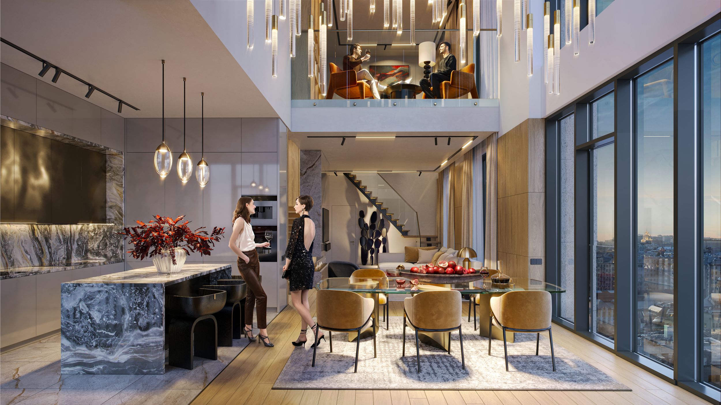 - редкие форматы квартир: двухэтажные со вторым светом, high level с увеличенной до 8,25 метра высотой потолков, пентхаусы с террасой и камином